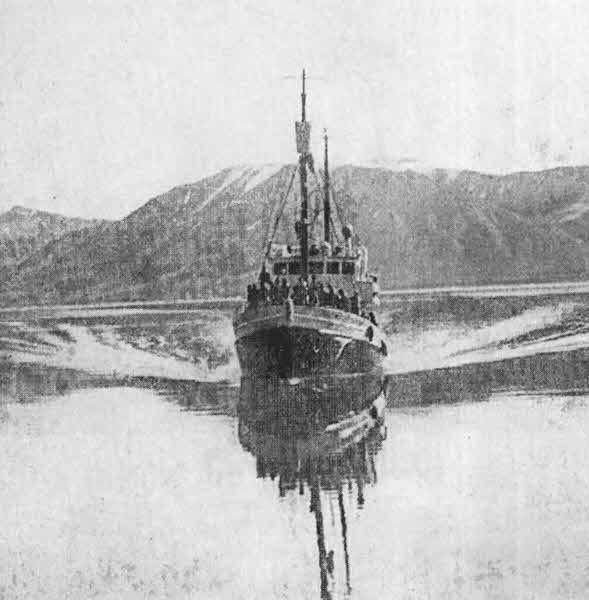За день до прибытия судна, на котором мы должны уезжать, разразилась буря. Антенна радиостанции, процеживая воздух сквозь свои многочисленные растяжки, уже не посвистывала, а выла и визжала. Темно-серые гряды туч, брызгая дождем, неслись по небу, догоняя ветер. Все гадали, какую волну развела буря в открытом море, сколько баллов, как-то там чувствует себя наш корабль, в порядке ли пассажиры. Поползли слухи, что пароход опаздывает на двенадцать часов. Потом срок опоздания вырос до полутора суток. А корабль взял и забелел в устье фиорда почти точно в назначенное время. Не опоздал!