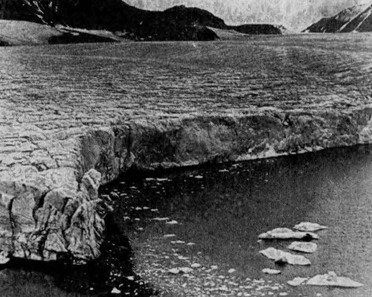 С седловины хребта сползает горбатый ледник. Перед ни?л, внизу у берега фиорда, высокая конечная морена. А между ней и краем ледника не такое уж маленькое озерцо, куда с гулом и грохотом сбегает вода.