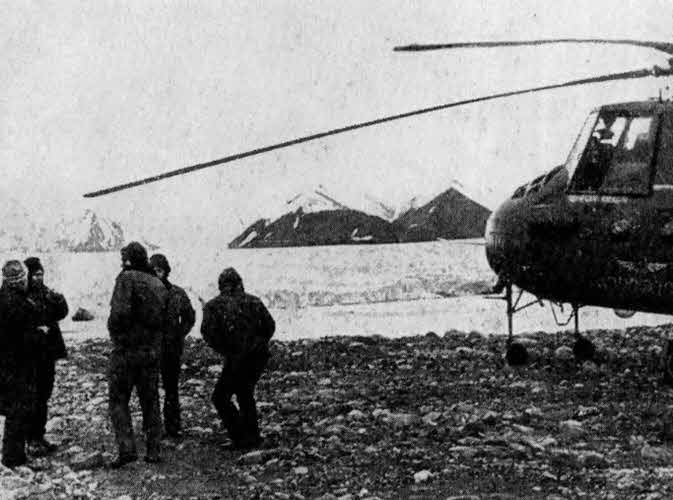 Оранжевая стрекоза поднимается, быстро несет меня вдоль берега фиорда. Кажется, лишь минутка пролетела, а командир уже спрашивает, где буду высаживаться. Прошу оставить меня на самой удобной площадке, повыше и поближе к леднику.