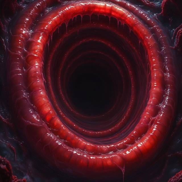 Со свистом в ушах меня развернуло к пропасти. Крикун опережал меня на пяток метров, но это было совершенно неинтересно. Я увидел, куда мы падаем, и мне самому захотелось орать. Вспомнились все фантастические фильмы с огромными пастями в бездонных ямах, с десятком рядов метровых клыков во все стороны. Но то, что я увидел, было намного хуже, наверное, потому, что это ни хрена не кино, мне прямо сейчас в это нырять. Гигантская красная воронка то и дело колыхалась, сокращалась, происходили и другие движения, от вида которых хотелось орать и бежать куда глаза глядят.
