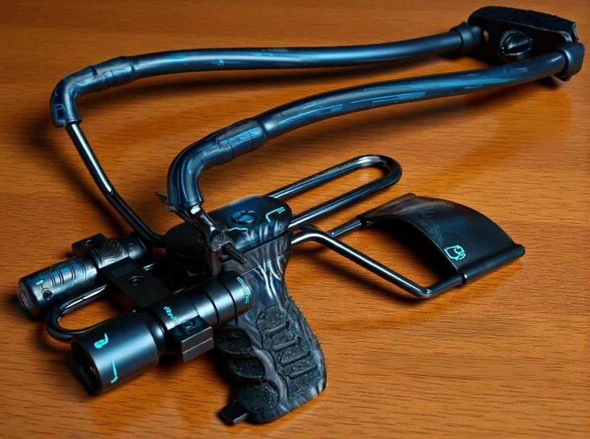 Боевая рогатка представляла из себя настоящий шедевр метательного оружия. Корпус из стеклопластика, пузырёк уровня чтобы видеть прямо ли ты держишь оружие, даже лазерный целеуказатель. Да будь у меня такая игрушка сорок лет назад, я был бы самым крутым пацаном на районе, все пацаны и девчонки в рот заглядывали, а вредные бабки на верхних этажах ныли от бессилия.