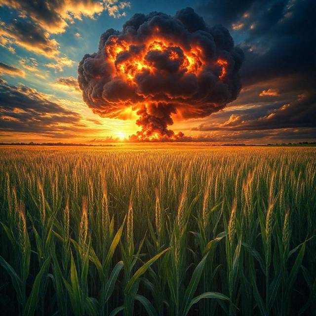 Это была равнина, а если точнее, гигантское поле, засаженное каким-то культурным растением, рожь не рожь, я в этом не особо разбирался, к тому же эльфийское. Обрадовало другое, далеко на горизонте вырастал гигантский огненный гриб, его верхушка пропадала за облачным слоем.