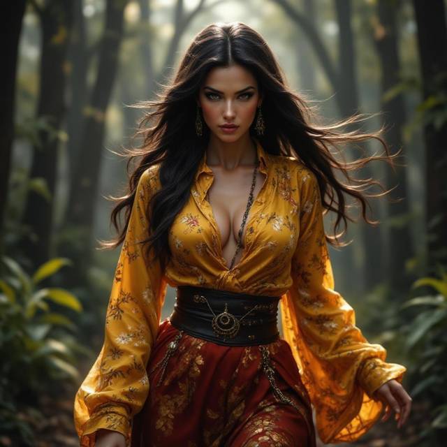Самое интересное произошло несколькими секундами позже. В пяти метрах от нас, материализовалась девушка в цветастых этнических одеждах, пёстрое, аж в глазах зарябило, юбка, что-то вроде блузы, сама она, явно восточных кровей.