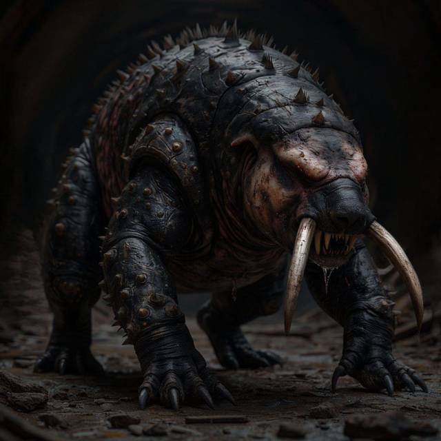 Чертовски похожи на кротов, глаз я не заметил, зато острые наросты по всему немаленькому телу, здесь скорее саблезубый крот больше подходит, размерами похож на древних кошачьих, да и повадками не особо отличается.