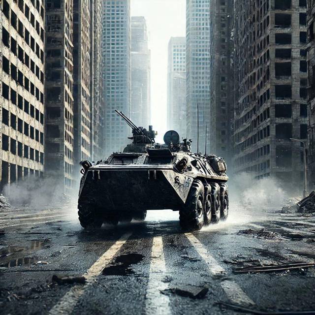 Я пролежал так не меньше часа, все звуки давно стихли, выждав ещё несколько минут, решил разведать обстановку. Мышью прошёл по коридору, приблизился к окну, ведущему на ту сторону, где прошёл бой. Улица не была пустынной, обломки каких-то конструкций, детали стрелкового оружия и тот самый БТР. Стволы и другие убийственные приблуды никуда не делись, правда, большая часть выгнута под неправильными углами, резина отсутствует как таковая, техника стояла на дисках, словно команда охотников, перед тем как свалить с поля боя, по быстренькому её разбортировала и утащила на горбу.