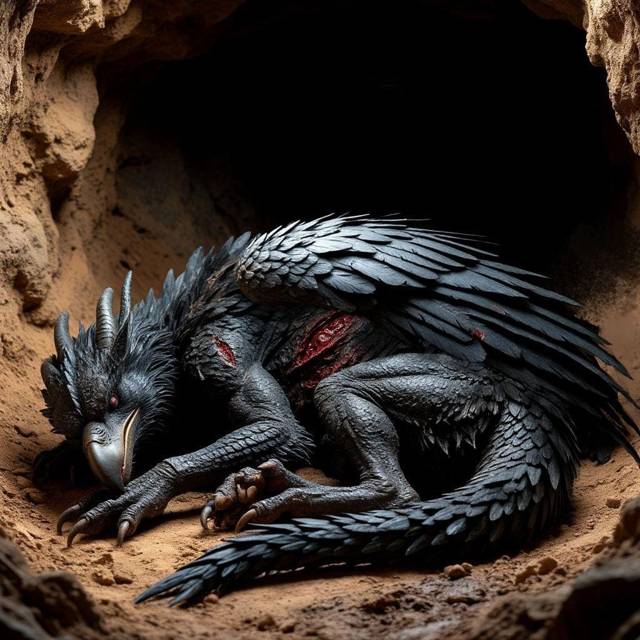 Монстр дрых, глаза под веками бегали, конечности слегка подёргивались, все, кроме повреждённой лапы.