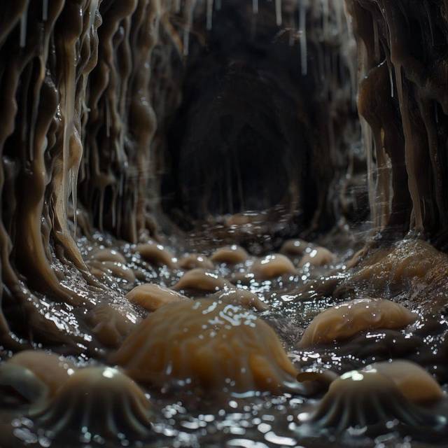 Отголоски первых настоящих проблем, начали проявляться к концу второго часа. Стены пещеры покрылись чем-то липким и тягучим. Я не рискнул касаться этой субстанции хотя бы потому, что толстая шкура червей начинала шипеть и дымиться, твари тут же одёргивали бока.