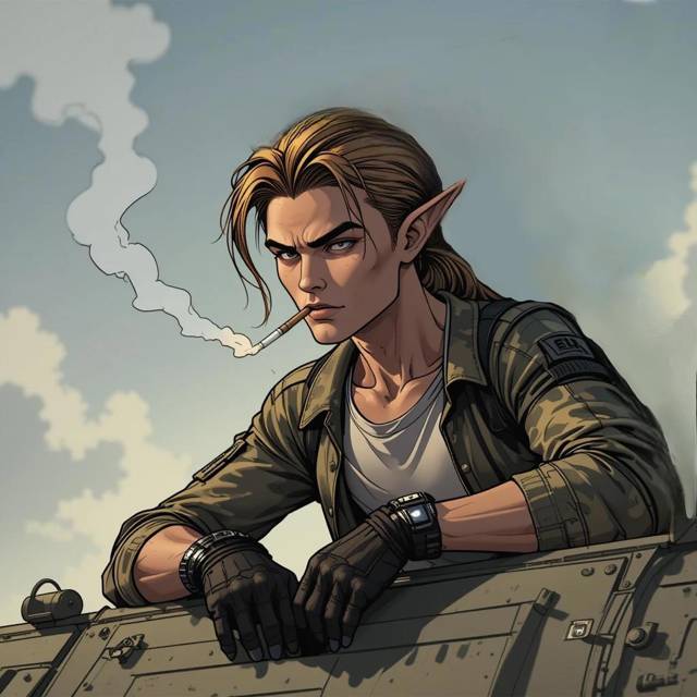 Я попытался представить эльфа на танке, затем на БТРе. Смазливая ушастая морда торчит из люка, в зубах папироска, прёт мазутой… получилось не особо.