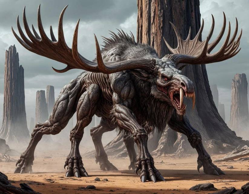 А тварь и правда похожа на благородного лося, если такая порода вообще существует, точнее, можно перепутать в темноте, да с плохим зрением. А как поближе окажется, так тебе голову и откусит, с такой пастью это проще простого.