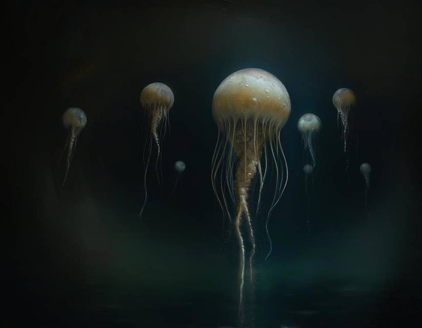 Не найдя ничего опасного, я погрёб к ближайшему мутному шару. Каково же было моё удивление, когда стало понятно, что это на самом деле. Во-первых, я ошибся с расстоянием, они висели не так близко, примерно полторы сотни метров. Во-вторых…