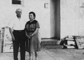 Папа и мама возле своего барака в маабаре