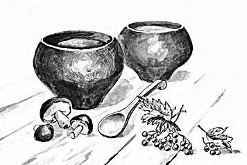 Кастрюль современного типа в обиходе не было. Горшки, которыми пользовались в нашей избе и во всех домах поселка, были особого рода: черные, отлитые из чугуна, они так и назывались: большой – чугуном, а маленький или средний – чугункой. Все чугуны были особой формы, суженной в нижней части, что позволяло переносить их с помощью ухвата.