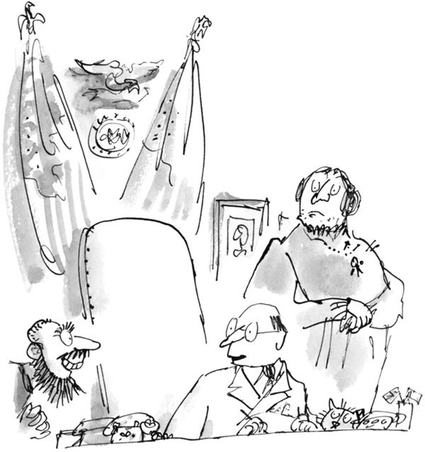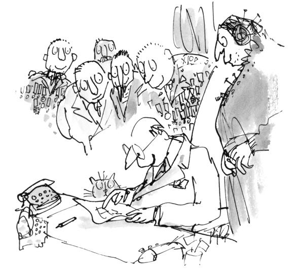 Президент резко втянул в себя воздух. Вместе с воздухом он случайно втянул в себя муху, которая пролетала мимо. И поперхнулся. Мисс Тиббс стукнула его кулаком по спине. Президент проглотил муху и почувствовал себя лучше. Но очень рассердился. Схватил карандаш и бумагу и начал что-то рисовать. Рисуя, он без умолку бормотал: