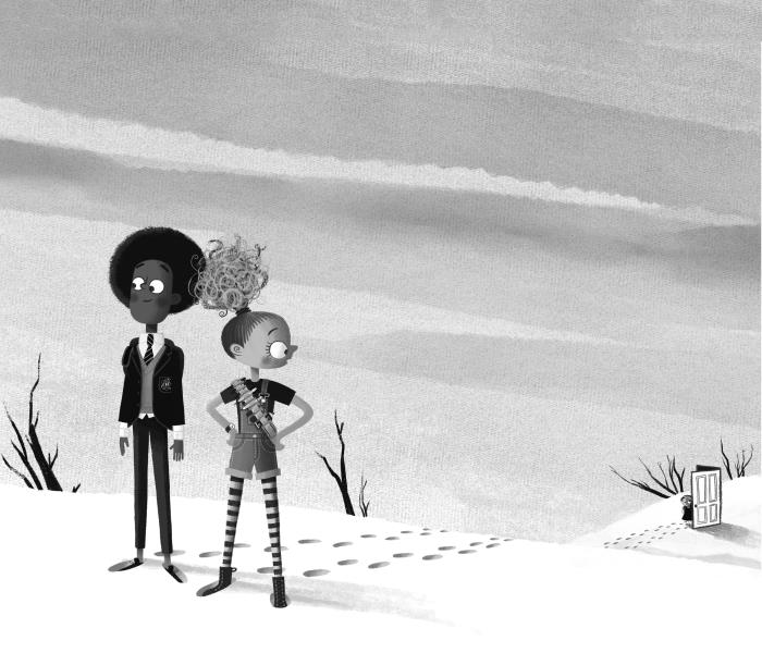 Она подошла к большому рулону бумаги, прилепленному на мастику к шкафу, и нарисовала дверь – точь-в-точь такую же, как и прошлым вечером. Но, прежде чем протянуть руку в рисунок и взяться за дверную ручку, она мельком глянула на Роквелла. Вид у него был встревоженный. Орешек повернула ручку, раздался щелчок, и дверь открылась. И тут же в комнату ворвался стремительный порыв холодного воздуха и разметал листы бумаги в разные стороны.
