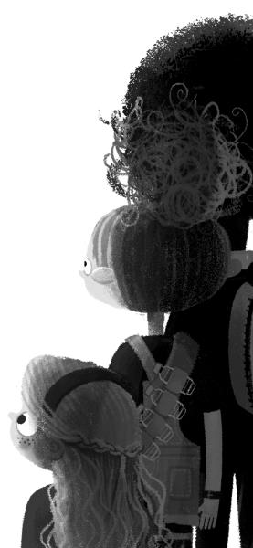 Напоследок она загрузила его тщательно отобранными принадлежностями для рисования: большим куском угля, тремя несмываемыми маркерами различной толщины, маркером-кистью, двумя кисточками для акварелей и маленькой коробкой акварельных красок, баллончиком с краской и, разумеется, жёлтым карандашом. На спину она прикрепила четыре пустые бутылки для воды, которые выудила из корзины для мусора. Потом взяла полоску паспортных фотографий, на которых были они с папой, сложила пополам и спрятала в передний карман комбинезона.
