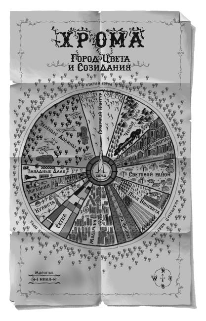 – Многие, если не все самые прославленные творцы из вашего мира проводят время у нас в Хроме. В честь некоторых даже назвали районы. – Она показала на разложенный лист бумаги. – Вот, по карте можно представить, какой он большой, Нарисованный город.