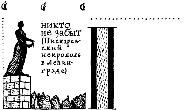 Так погребено было на Пискаревском и остальных кладбищах только умерших от голода 632 253 человека. Это подсчитали после победы ленинградские статистики. Значит, почти нет во всем городе старожила, у которого не лежал бы близкий на Пискаревском кладбище…