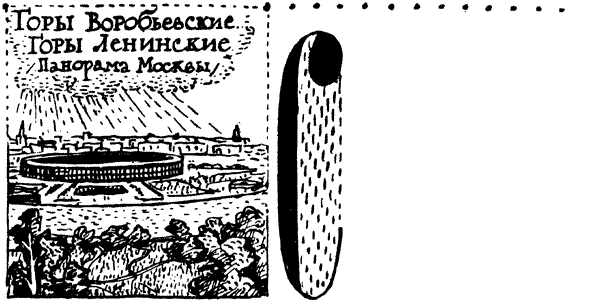 …Под нами, в Лужниках, на левом берегу Москвы-реки вознесена овальная чаша самого большого в стране стадиона – Центрального стадиона имени Ленина. Вокруг спортивных сооружений успел подняться хорошо ухоженный парк с газонами и, цветниками. Дальше, за ниточкой железнодорожного полотна Окружной дороги, по всему горизонту вздымаются уступчатые силуэты высотных зданий.