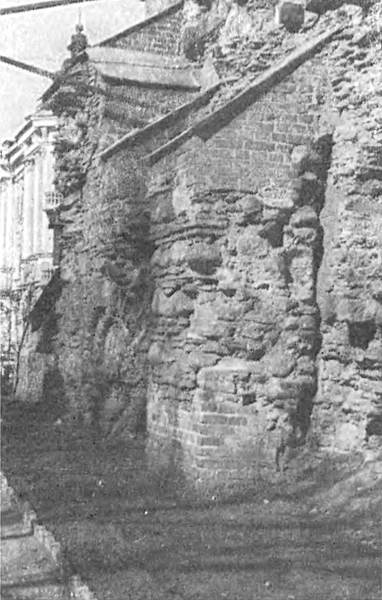 Руина Золотых ворот в Киеве – памятник времен Ярослава Мудрого. Хорошо видно, как древние строители вели кладку на цемяночном растворе, чередуя ряды кирпича-плинфы с рядами камня.