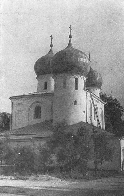 …К Мирожскому монастырю, прямо по льду реки Великой, вела чуть приметная тропка (летом здесь переправляются на маленьком пароходике-пароме). Увязая в глубоком снегу, я обошел здание собора, пока сторожиха возилась с ключами.