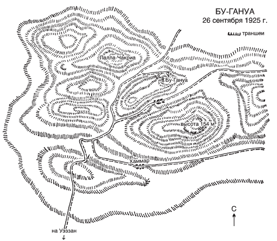 Одним из последних важных действий, которое должно было быть произведено, было обычное снабжение и усиление одного из блокгаузов с названием Бу-Гануа, расположенного в 8 км к северу от Уэззана. Его гарнизон насчитывал примерно сорок человек, а коммуникации были перерезаны. Из Уэззана до Бу-Гануа дорога шла по холмистой местности через многочисленные овраги. Это благоприятствовало просачиванию воинов-рифов, поэтому французы решили зачистить этот район и установить более крупный пост с несколькими опорными пунктами, каждый численностью до роты. Предыдущие попытки снабжения Бу-Гануа стоили многочисленных потерь, когда колонны на дороге большую часть пути находились под огнем. В конце пути с востока над дорогой нависала господствующая высота 505.