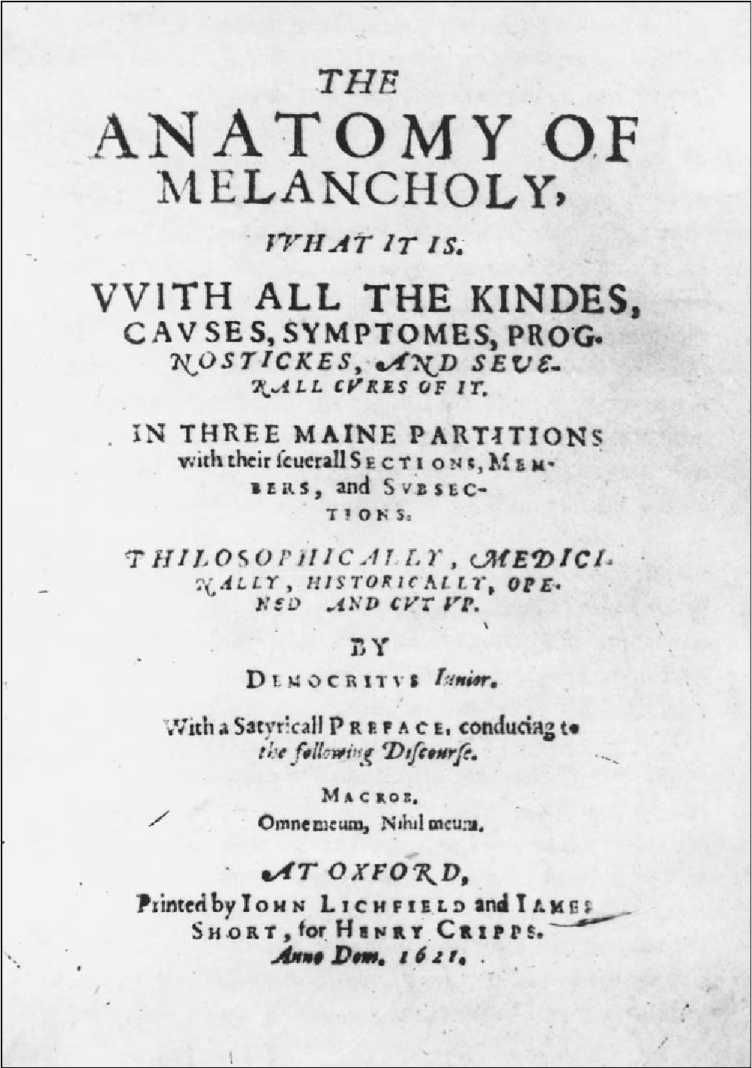 [Закрыть] Роберта Бертона (Robert Burton, 1577–1640) «Анатомия Меланхолии» («The Anatomy of Melancholy», первое издание – 1621) и чрезвычайно пространного к ней предисловия автора под названием «Демокрит Младший – читателю»[2]2