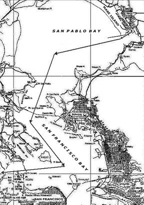 В проливе Мэр-Айленд мы были единственным судном. Я вёл нас по фарватеру мимо дамб с огнями на оконечностях, обозначавших вход в канал. Повернули вправо примерно на запад-юго-запад, огибая якорную стоянку ВМС № 21 и рейд захоронения за пирсом 35. Примерно через милю вышли на канал Пайнол-Шоул курсом около 260°, затем 240° – в залив Сан-Пабло. Оттуда взяли левее через полуторамильный пролив Сан-Пабло и вокруг восточной стороны острова Анхель в залив Сан-Франциско.