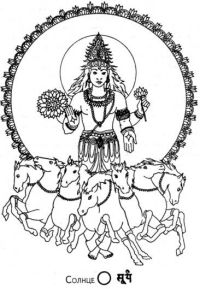 — Солнце — главнейшая из планет, и он[1] благоволит ко всем, кто служит ему с постоянством и преданностью. Он есть Бог среди планет, воплощённый в форме Солнца. Всякий, кто воздает Солнцу почести от чистого сердца, избавляется от тревог, болезней и бедности, ибо непоколебимая преданность Солнцу устраняет все преграды и исполняет все сокровенные желания.