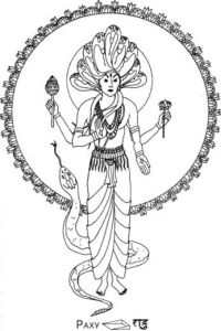 Так они и поступили. Добавив в Океан всевозможные целебные травы, кустарники, лианы и другие растения и соорудив из горы Мандары и змея Васуки устройство для взбивания[18], дэвы и асуры сообща взялись за дело. Благословенный господь Вишну, приняв облик первозданной Черепахи и погрузившись на дно Океана, помогал им пахтать, то вздымая, то опуская священную гору Мандару, опиравшуюся на его спину. Приливы и отливы, какими мы наблюдаем их сегодня, образовались из-за волны, вздымавшейся придыхании Божественной Черепахи. Мерное вращение и поскребывание священных орудий, которыми боги и асуры взбивали Океан, убаюкали Черепаху, и она погрузилась в сон.