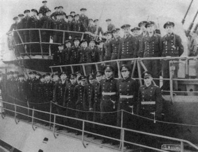 Команда «U-869» после приемки, 26 января 1944 года. Трое офицеров стоят в нижнем ряду справа: Зигфрид Брандт (крайний справа), Гельмут Нойербург (в центре), Людвиг Кесслер (крайний слева).