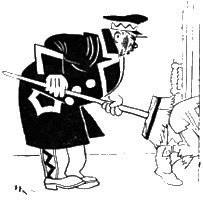 Филька ловко использовал момент: выскочил из под мешков и хотел юркнуть вверх по лестнице. В неплотно прикрытую дверь носороговой берлоги падает полоска света: в корридоре много рухляди– шкафы, корзины, вешалка с платьем. Вкусно тянет чем-то жареным.