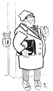 Проводив супруга, толстая женщина вернулась, прибрала следы боя. захватила ковровый мешок и скрылась. Было слышно, как щелкнул замок на парадной.