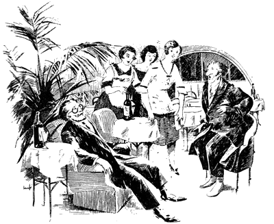 – Дорогой профессор, остановитесь же на секунду, прежде чем нестись дальше!.. – и он сам упал тяжело на стул. Профессор тоже бессильно опустился напротив него и тут только узнал, правда, протерев предварительно очки, своего друга. Баядерки же были склонны усмотреть остроумную шутку в способе появления двух удивительных гостей. Они схватили карту вин, подскочили к друзьям и хором спросили: