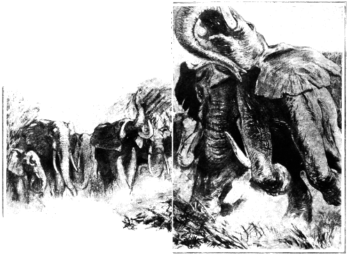 Не один час продолжался бой. Сначала стадо спокойно следило за поединком. Но чем ожесточеннее была эта битва, тем взволнованнее становились и следившие за ней слоны. Старые слоны раскачивались взад и вперед, размахивали хоботами и били ногами о земь, точно опьянение боя входило в их кровь.