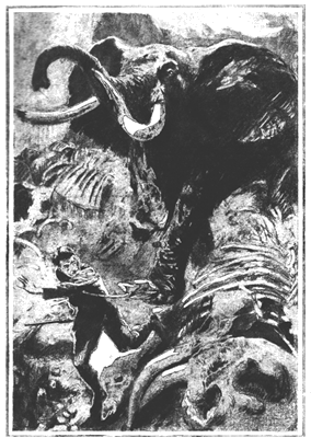 От неминуемой гибели Мак-Куэшчиона спасло падение. Тело охотника провалилось в яму, образовавшуюся из скелетов, как раз в тот момент, когда слон наклонил огромную голову, чтобы уничтожить смельчака.