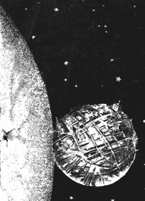 Меньшая из лун Марса – Ганимед, – всего 7 миль в диаметре. На ней поместился бы большой город, как это показывает на своем рисунке художник.