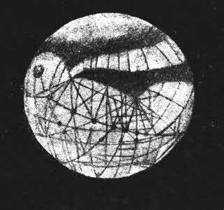Его огромные легкие должны были бы помещаться в но туловище поддерживалось бы тонкими паучьими ногами, так как полный его вес должен быть значительно меньше, чем вес человека Земли. Ведь, Марс, имеющий в диаметре 4.200 миль, достигает только половины размеров Земли, а, следовательно, и сила притяжения соответственна.