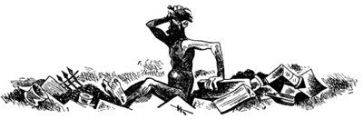 А дале – сомлел Аким, не выдюжил и в сон вроде как бы погрузился. Проснулся от того, что захолодел. Хотел водки спросить, глядь… дома вокруг – вроде, как после землетрясения, – одни трубы торчат. А сам – голяшом, как есть на мусоре нежится. Ни исподников с червяками, ни старых сапог, ни новых, – как есть ни ниточки! Ну, то есть, только в чем мать родила!