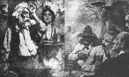 Умерла жена Ларкина. Все дети, кроме одной хорошенькой дочери, переженились и разошлись, каждый своей дорогой. Хорошенькая дочь осталась с Ларкиным, вышла замуж за красавца-испанца и превратила его дом и садик перед домом в кабачек. Она разжирела, стала бойкой, и дела ее шли отлично. Каждый вечер собирались веселые компании, ели, пили, беседовали, пели и даже танцовали. Тони, муж Тины, играл для гостей на гитаре. А старик Ларкин сидел в углу, молчаливый, задумчивый, быть может, не совсем в своем уме. Иногда он прикрывал глаза рукой, точно закрываясь от ужасного видения.