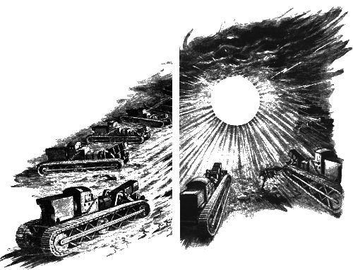 Фронт тракторов теснее сомкнул круг. Динамо развивали акспмум своей мощности. Машины дрожали, стонали, гудела, как живые. Пламенный тар приближался…