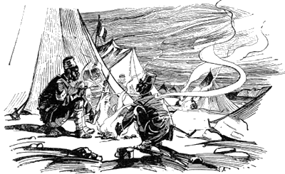 Сангильер писал новое письмо. Ему нужен был конверт и, так как его не оказалось под руками, он встал, подошел к кровати, выдвинул походный чемодан и открыл его. В это время один из офицеров, пробегая мимо, заглянул в палатку капитана.
