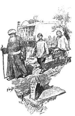 Пришел мулла, старый, седой и тучный. За ним два суфия па маленьких носилках принесли большую черную книгу.