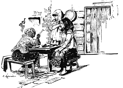 Когда Иван Егорыч вернулся в избу, там было сумрачно. Молодежь уехала догуливать свадьбу к сватам. Отец что-то клепал у печи. На лавке за столом сидела Дуня. Филька ел кашу, старательно облизывая ложку.