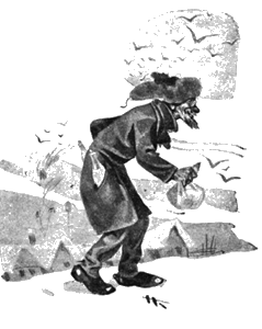 У него была шатающаяся, неровная походка. Он так колыхался на твердо ступающих ногах, запрятанных в высокие, полустоптанные резиновые галоши, из которых сзади торчала малиновая суконная подкладка, как колыхаются только паралитики или контуженные в боях. Ему было лет за пятьдесят, борода у него шла клином, и в ней один клок был седой. На носу у него помещалось пенсне, блестевшее как золотое, хотя в сущности едва ли было сродни этому благородному металлу. Он был в теплой шапке какого-то эскимосского покроя, с ушами, как у легавого пса, и в потертом рыжем пальто на вате, с поднятым пегим бархатным воротником.