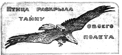 Теоретические опыты насчитываются сотнями, по ни один из них не имел серьезного значения. Птиц и самых разнообразных насекомых снимали обыкновенным фотографическим аппаратом, затем снимали для кинематографа. Скальпель физиолога разобрал по частям трепещущий мотор птицы… Но птица хранила свой секрет. И установленные из опыта принципы, примененные затем к этой волнующей загадке, оказывались бессильными или даже явно противоречили наблюдаемым фактам.