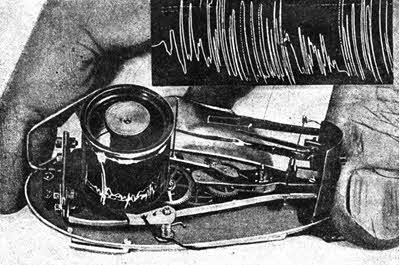 Акцелерограф, изобретенный Маньаном и Хюгенаром, представляет настоящее маленькое чудо механики. Длина его 7 сантиметров, ширина 3 сантиметра, высота также 3 сантиметра, а вес всего только 55 грамм… И, несмотря на его миниатюрные размеры, он позволяет записывать напряжения птицы в вертикальном направлении и движение ее крыльев.