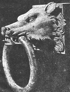 Древние римские летописцы рассказывают. что император Калигула, знаменитый своими жестокостями и сумасбродствами (конь Калигулы в сенате!) велел построить однажды для себя на озере Неми около Рима замечательный корабль невиданных размеров и роскоши. Предание говорит, что на корабле были мраморные храмы и бассейны, шелковые золототканные паруса, зеленые висячие сады и фонтаны, что корпус его был построен из драгоценнейших сортов дерева и что весь он был изукрашен художественными произведениями из бронзы и мрамора. Прошли века и озеро Неми было осушено во время каких-то гидротехнических работ. Дно озера обнажилось и древней легенде суждено было воскреснуть. В иле действительно нашли остатки какого-то судна, полного редчайших произведений исскуства. Помещаемые два рисунка – снимок с бронзовой головы медузы и головы волка, держащего причальные кольца, дают нам некоторое представление о ценности найденных сокровищ.