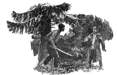 Он вышел из-за елки. Перед ним, лицом к лицу, едва переводя дух, стоял низенький солдат в серой шинели. Увидя Дементия, он широко раскрыл глаза и застыл на месте. Дементий стоял без рубашки, с дубиной в руке. Низенький был безоружен.