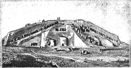 Храм божества Луны в Уре во время раскопок. Уже сняты горы песку, засыпавшие его.