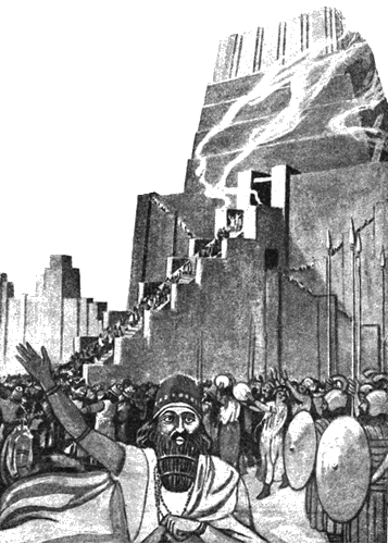 Но венцом архитектурных совершенств города все же является огромный зиггурат, колоссальная груда, напоминающая пирамиды Египта. По бокам его шли лестницы и террасы, а вершину венчало небольшое здание, в котором, по преданию, одиноко жила прекраснейшая из дочерей города, посвященная божеству Луны, как его невеста.